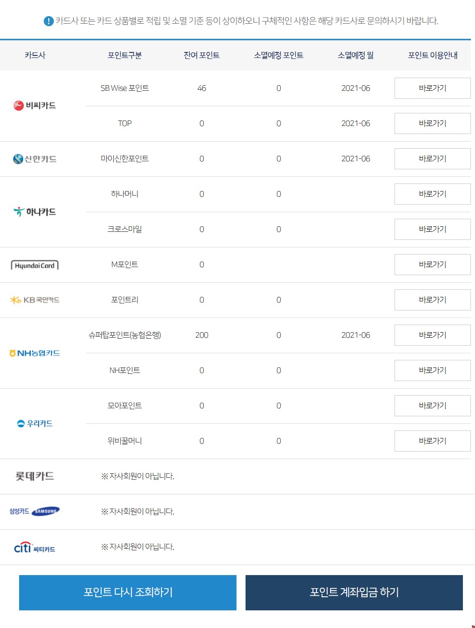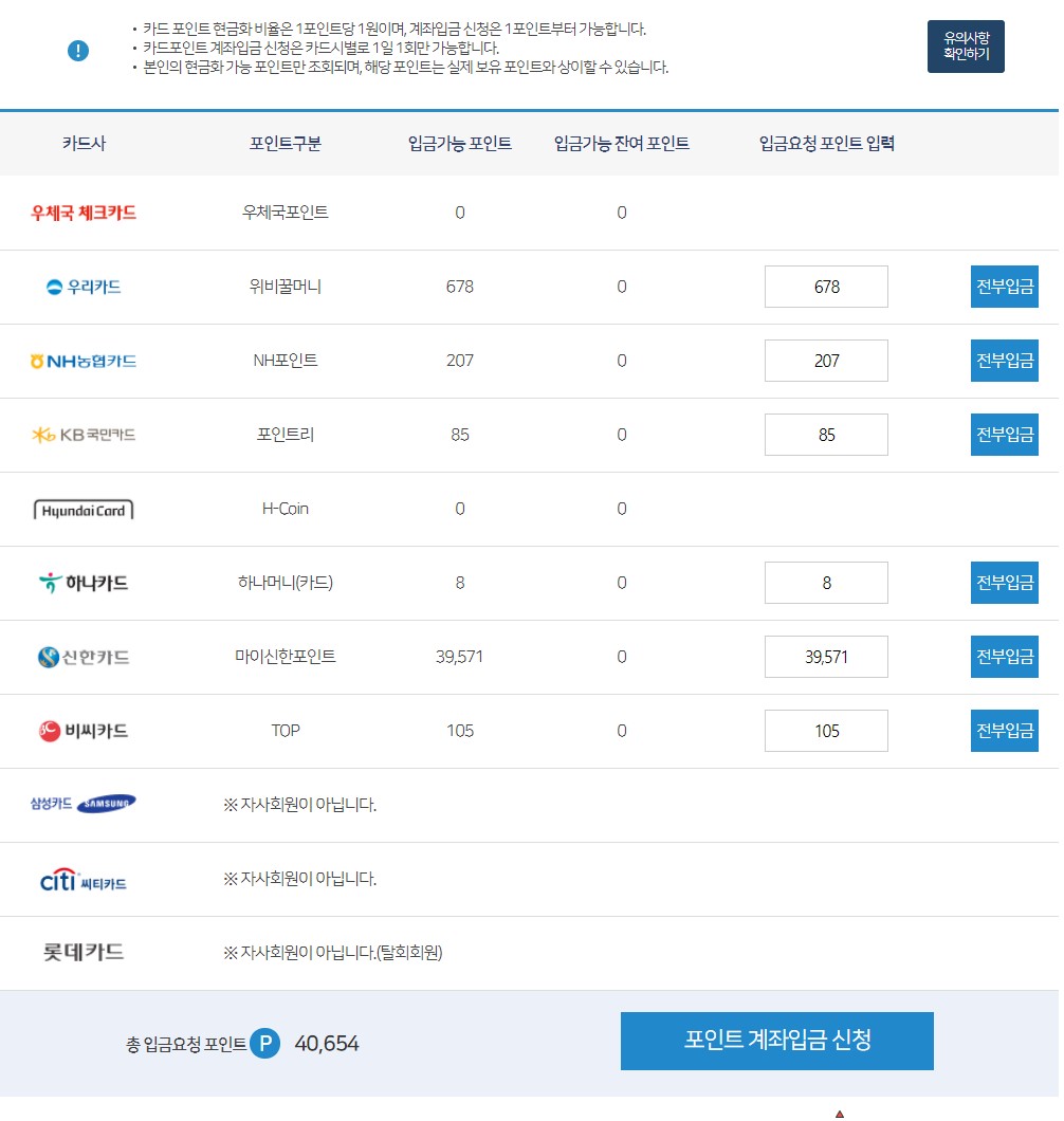 그냥 카드 포인트를 전부 조회하고 입금하는게 전부