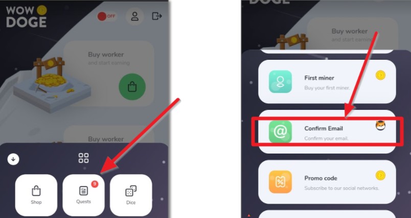이메일 확인후 퀘스트 버튼에 이메일 확인을 눌러주고 보상받기를 누르면