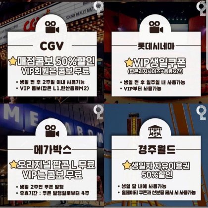 롯데시네마 - 팝콘 + 음료 2잔 ( vip 대상 )